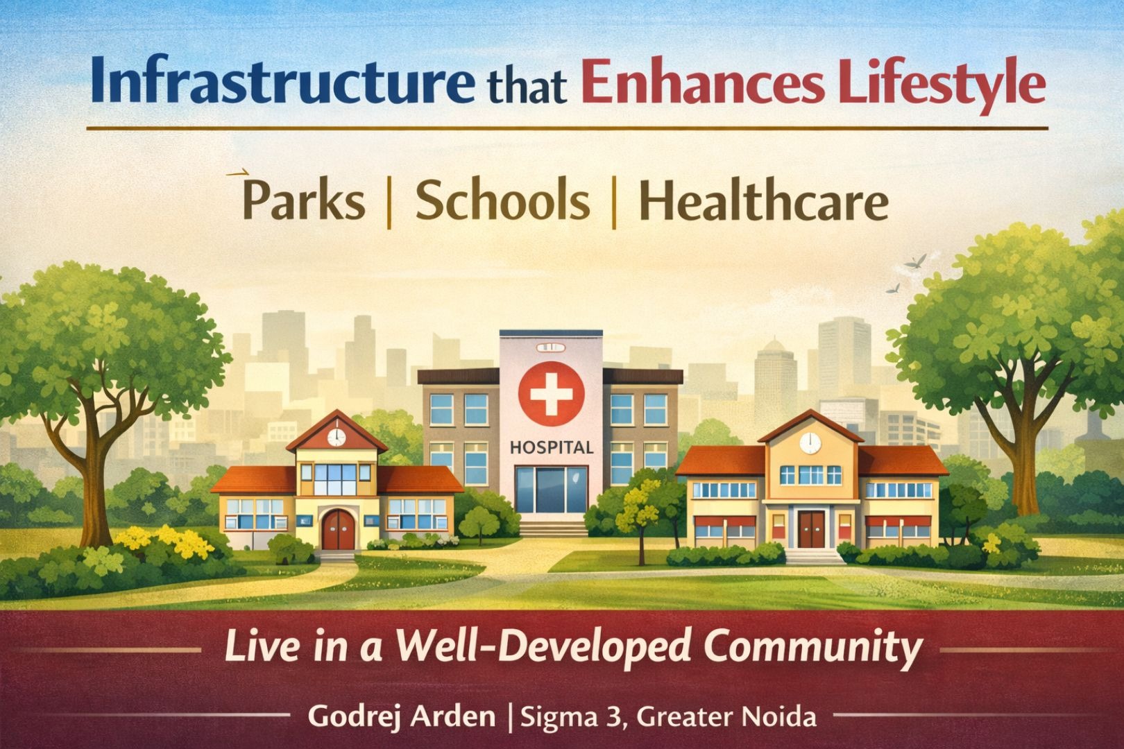 For residents at Godrej Arden, this translates into easier morning routines. Office travel, school drop-offs, grocery visits, and evening returns remain manageable because local roads connect efficiently to major corridors such as the Noida–Greater Noida Expressway. The availability of metro connectivity through nearby Aqua Line stations further adds flexibility for those who prefer public transport.